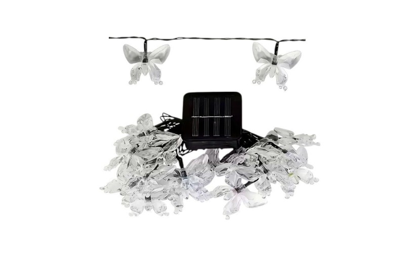 Ηλιακή γιρλάντα φωτισμού LED με λαμπτήρες σε εντυπωσιακό σχέδιο Πεταλούδα, με ενισχυμένο καλώδιο και ρυθμιζόμενο ηλιακό πάνελ, ιδανική για έναν όμορφο ατμοσφαιρικό φωτισμό στο μπαλκόνι, τον κήπο ή τη βεράντα σας, εύκολα, ασύρματα και οικονομικά χωρίς την ανάγκη πρόσβασης σε ρεύμα.
