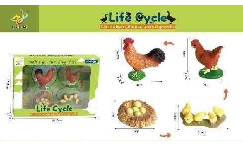 Εκπαιδευτικό σετ Κοτόπουλα-Life Cycle με 4 φιγούρες, που βοηθάει το παιδί να μάθει και να κατανοήσει τον κύκλο της ζωής και της εξέλιξης των ζώων.