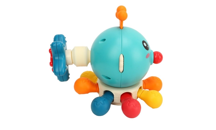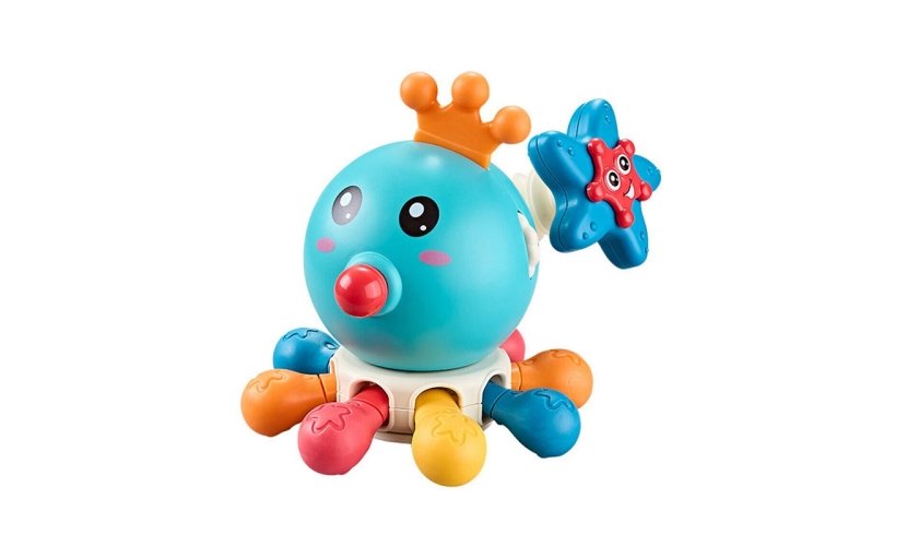 Βρεφικό παιχνίδι χταπόδι με κινούμενα πόδια και ήχους. Κατασκευασμένο από μαλακό πλαστικό υλικό, μη τοξικό και ασφαλές. Μπορεί να χρησιμοποιηθεί στο μπάνιο καθώς είναι πλήρως αδιάβροχο. Μπορεί να κάνει πολλαπλές κινήσεις όπως περιστροφή κεφαλιού, κίνηση και πίεση ποδιών, χειροκίνητη επέκταση του αστερία και τράβηγμα μύτης κτλ. Ένα εξαιρετικό παιχνίδι με πολλές δυνατότητες που θα εξασκήσει την λεπτή κινητικότητα του παιδιού και θα διατηρεί το ενδιαφέρον του ώρες.