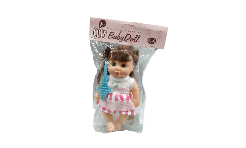 Παιδική κούκλα με υπέροχα πολύχρωμα ρουχαλάκια και χτένα περιποίησης.