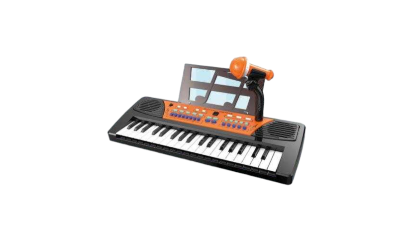 Παιδικό εκπαιδευτικό πιάνο, σε υπέροχο ρεαλιστικό σχεδιασμό, με μικρόφωνο και πολλαπλές επιλογές ήχων, για τους μικρούς λάτρεις της μουσικής.