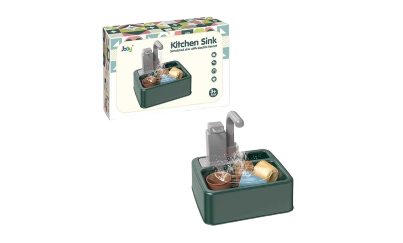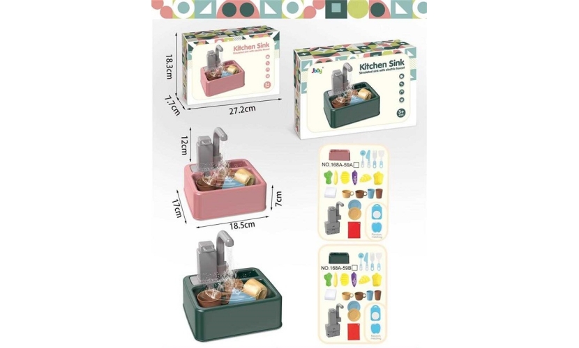 Παιχνίδι νεροχύτης κουζίνας με αξεσουάρ σκεύη και τρόφιμα, σε υπέροχο πολύχρωμο σχεδιασμό.Γεμίστε με νερό τη βάση και δείτε το βρύση να τρέχει σαν αληθινή!