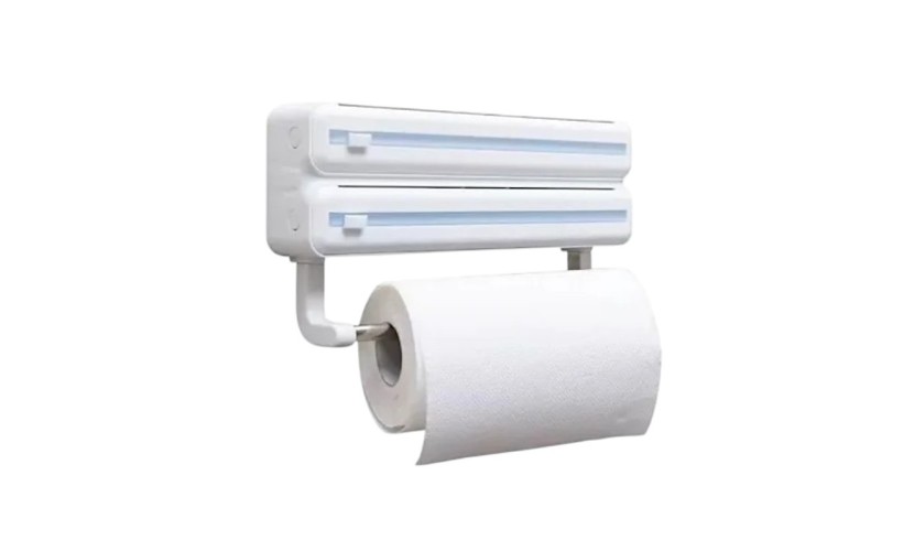 Επιτοίχια βάση ρολού κουζίνας με 2 ενσωματωμένες θήκες για μεμβράνη & αλουμινόχαρτο, με κόφτη για άμεση και εύκολη χρήση. Ένα πρακτικό εργαλείο 3 σε 1 που θα διευκολύνει την καθημερινότητα στην κουζίνα σας, εξοικονομώντας χώρο και χρόνο!