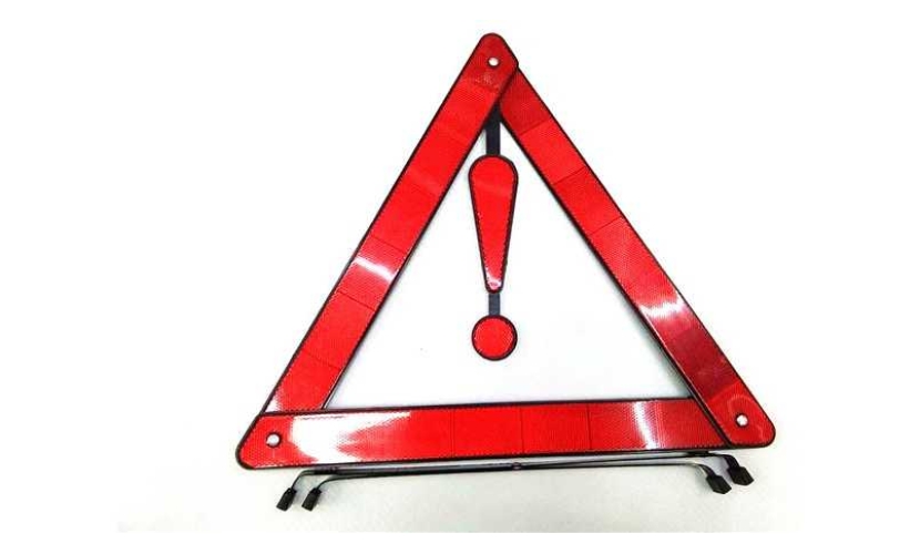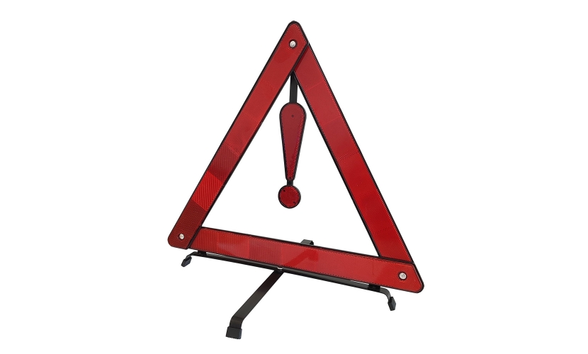 Προειδοποιητικό αντανακλαστικό τρίγωνο ασφαλείας αυτοκινήτου με θαυμαστικό, 42cm, με μεταλλική πτυσσόμενη βάση για την προειδοποίηση διερχόμενων οδηγών.