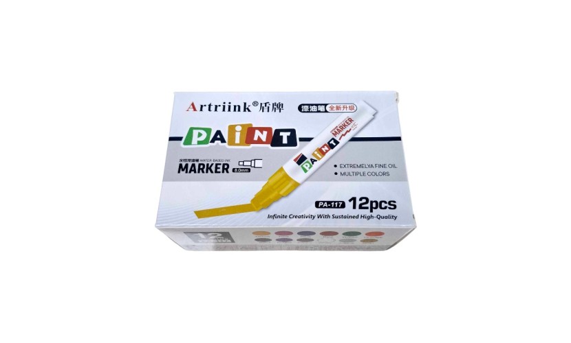 Μαρκαδόροι βαφής Artriink® Shield με βάση το νερό, σχεδιασμένοι για χρήση σε διάφορες επιφάνειες, όπως λάστιχα αυτοκινήτων, μέταλλο, γυαλί, ξύλο και πλαστικό.Είναι μόνιμοι, αδιάβροχοι και στεγνώνουν γρήγορα, προσφέροντας υψηλή καλυπτικότητα.
