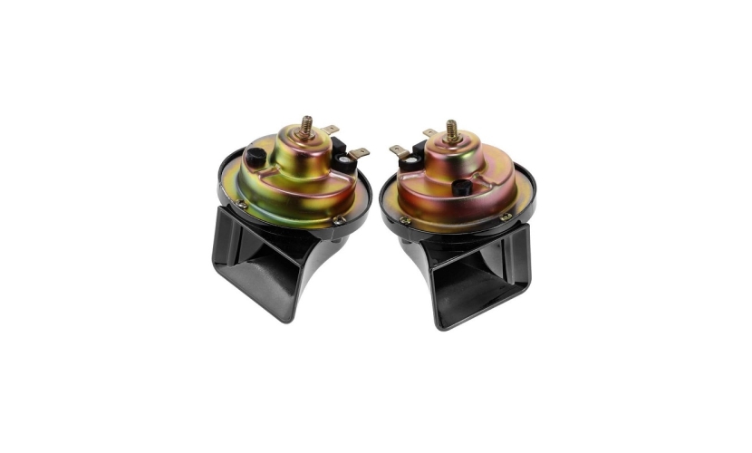 Δίδυμες κόρνες - Snail Horn - υψηλού και χαμηλού τόνου 12V, με εφεδρικό και βάσεις τοποθέτησης . - Μεταλλικές. - Διαστάσεις: 100 x 90 x 90 mm. - Sound output: 115 ± 5 dB (dB). - Τάση/vehicle current: 12V/4A. - Power: 30W. - Frequency response: 410 to 510 Hz. -δεν απαιτείται παροχή αέρα. -εύκολη τοποθέτηση με τα παρεχόμενα στηρίγματα. -αδιάβροχες.
