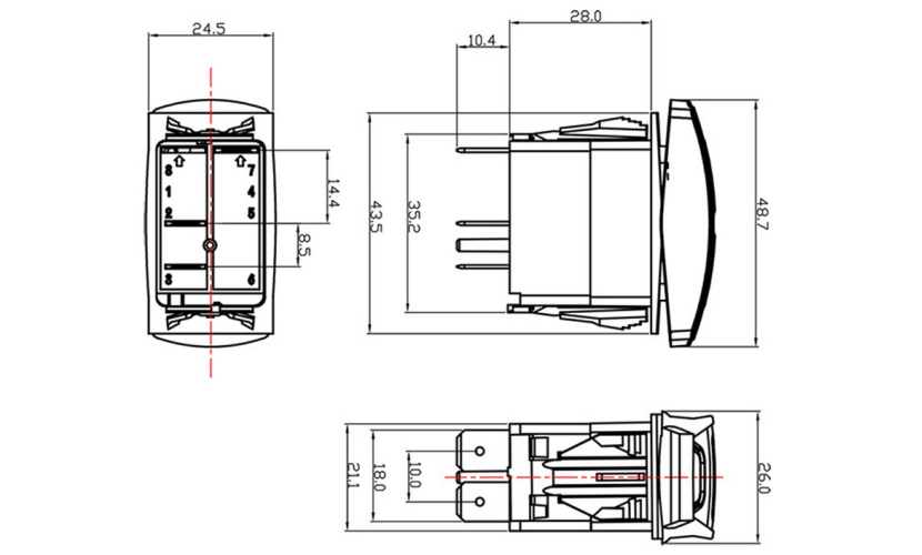 Τάση αντοχής/Withstand Voltage: AC 1500V (50Hz) 1 minΧρόνος ζωής/Switching life: 10.000 κύκλοι/times