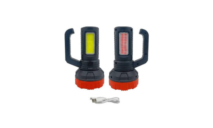 Πολυλειτουργικός επαναφορτιζόμενος φακός χειρός XS520. Διαθέτει ισχυρό μπροστινό φακό και δύο πλαϊνούς φακούς LED COB και Red Light ειδοποίησης έκτακτης ανάγκης.