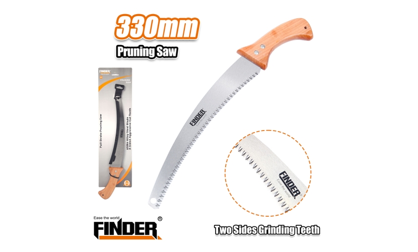 Πριόνι ξύλου Finder, με διπλή σειρά δοντιών και ξύλινη εργονομική λαβή. Μέγεθος: 330mm, Υλικό: Mn, Hardness: 54-58HRC, TPI: 6TPI, Two Sides Grinding Teeth.