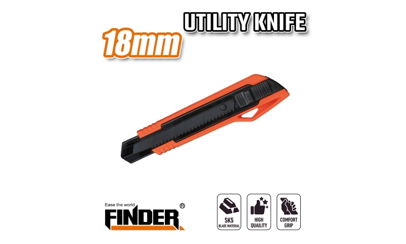 Κοπίδι-Φαλτσέτα 18mm, τη νέας σειράς Finder Max Series, με ατσάλινη λεπίδα και εργονομικό σχεδιασμό με κλείδωμα ασφαλείας.Υλικό λεπίδας: SK5. Υλικό πλαισίου: SPCC SteelΥλικό κελύφους: ABSΠεριλαμβάνεται 1 λεπίδα 18mm.