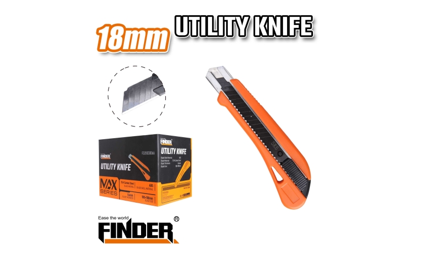 Κοπίδι-Φαλτσέτα 18mm, τη νέας σειράς Finder Max Series, με εργονομικό σχεδιασμό και κλείδωμα ασφαλείας.