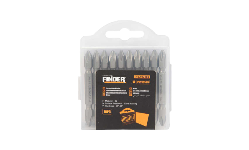 Ανταλλακτικές μύτες κατσαβιδιού διπλές, σετ 10 τεμαχίων, PH2*65mm, της Finder.Υλικό: S2Μέγεθος: PH2*65mmHardness: 58-62 HRC
