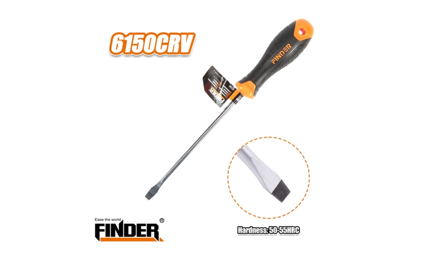Κατσαβίδι με ίσια κεφαλή (-), φτιαγμένο από Cr-V ατσάλι και λαβή τύπου PP+TPR. Μέγεθος: 6*150mm