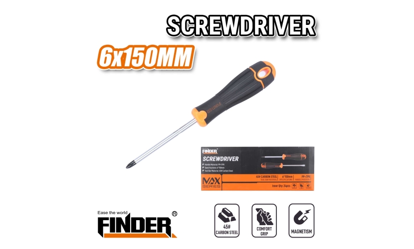 Κατσαβίδι μαγνητικό με σταυρωτή κεφαλή (+), φτιαγμένο από #45 Cr-V ατσάλι και λαβή τύπου PP+TPR. Μέγεθος: 6*150mm.