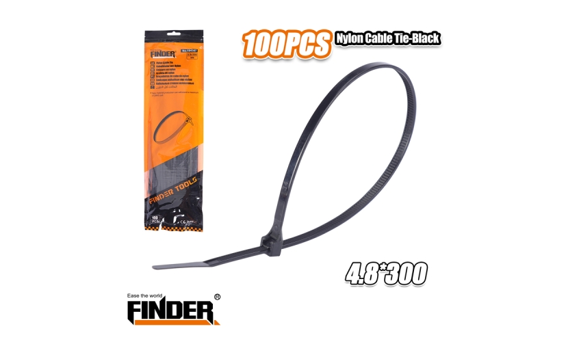 Σετ 100 τεμάχια δεματικά - Tie wraps, μεγέθους 4.8*300mm - Finder.Χρώμα: μαύρο.