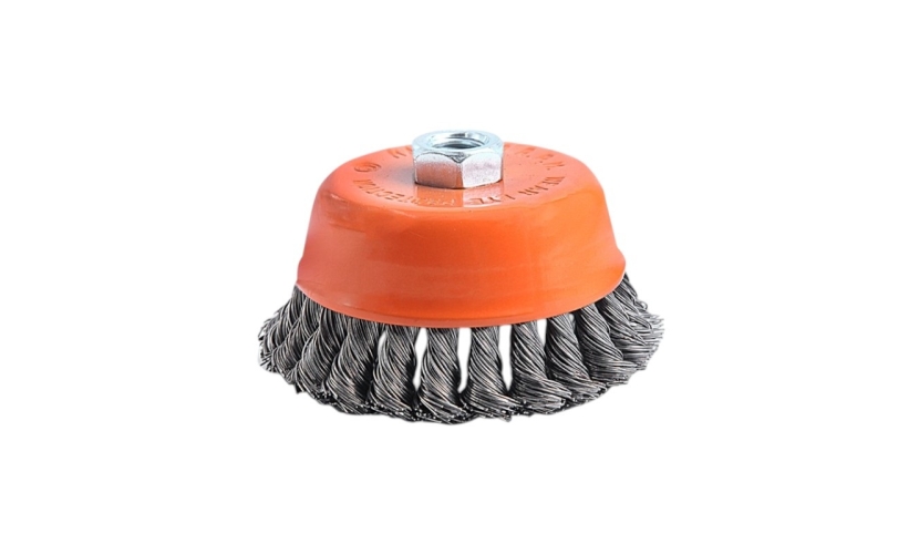 Συρματόβουρτσα καμπάνα στριφτή, μεγέθους 4"/100mm, με σιδερένια δόντια. Υποδοχή M14*2