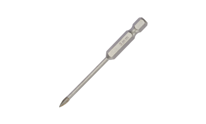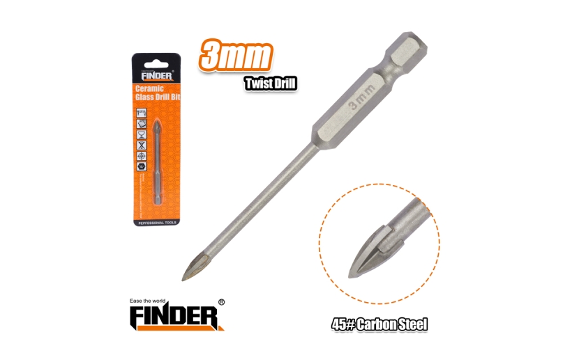 Τρυπάνι τετράκοπο γυαλιού και πλακιδίων της Finder, κατασκευασμένο από ατσάλι #45 Carbon Steel. Μέγεθος: 3mm.