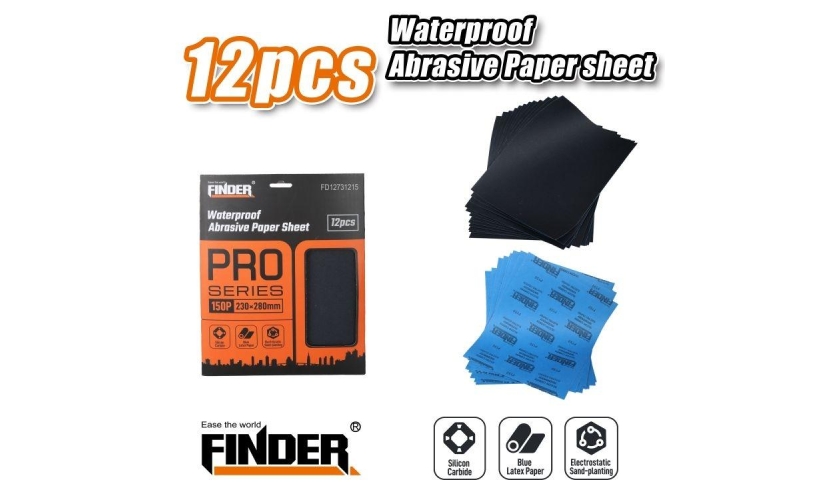 Αδιάβροχα φύλλα λείανσης, σετ 12 τεμάχια, της νέας σειράς Finder Max Series, υψηλής ποιότητας και αντοχής.