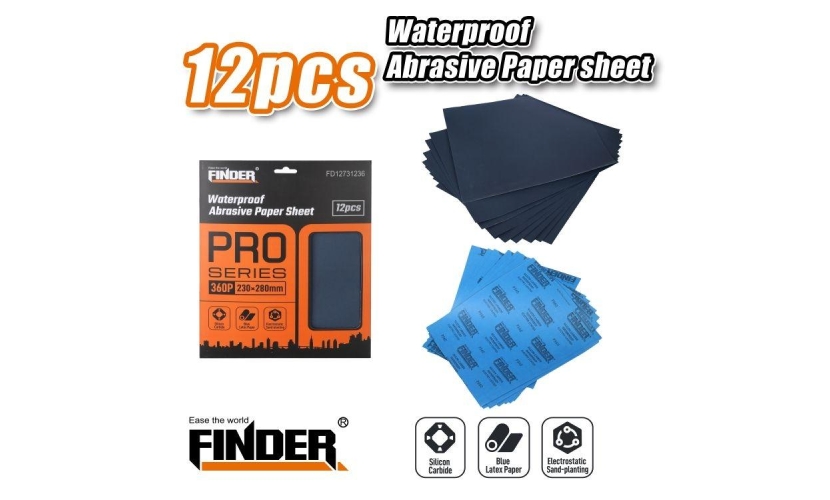 Αδιάβροχα φύλλα λείανσης, σετ 12 τεμάχια, της νέας σειράς Finder Max Series, υψηλής ποιότητας και αντοχής.