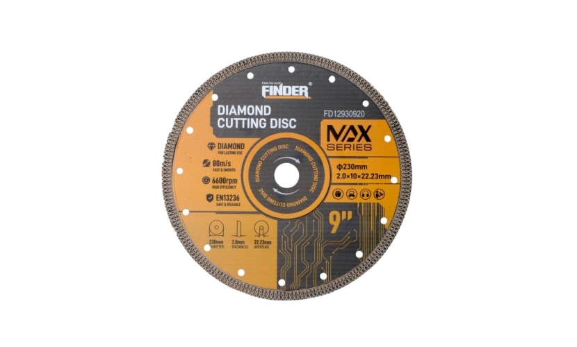 Υλικό: 65 εκΔιάμετρος: 230mmΠάχος λεπίδας: 2,0 mmΠλάτος λεπίδας: 10mmΔιάμετρος οπής: 22,23 mmΜέγ. Ταχύτητα: 80m/s, 6600rpmΣυγκέντρωση διαμαντιού: 18%Ποιότητα διαμαντιού: Αντοχή 16 κιλά