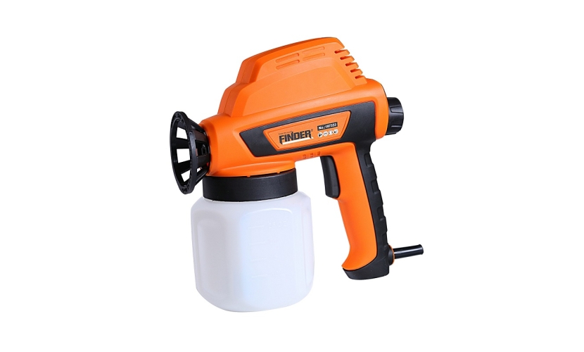 Ηλεκτρικο πιστόλι βαφής της FINDER. Χρησιμοποιείται για γρήγορη και εύκολη ολοκλήρωση όλων των εργασιών βαφής σε μέταλλο, τοιχοποιία και ξύλο. Διαθέτει δοχείο μικρού μεγέθους χωρητικότητας 0.8lt που δεν αυξάνει το βάρος του μηχανήματος κατά τη διάρκεια της χρήσης του. Για εξαιρετικά αποτελέσματα ακόμη και σε δύσκολες δομές και σε στενούς χώρους. Απολαύστε τον ψεκασμό χρώματος ξύλου, διαφανούς χρώματος ή βερνικιού για πολύπλευρες εργασίες γύρω από το σπίτι και σε έπιπλα και φράχτες.