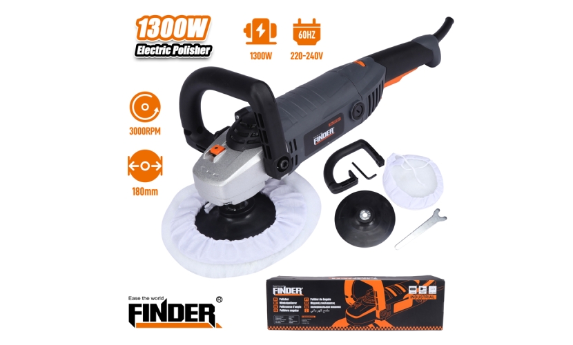Έκκεντρος αλοιφαδόρος ρεύματος της εταιρεία Finder με ισχύ 1300W. Ενδείκνυται για γυάλισμα, κέρωμα, διόρθωση γρατζουνιών και αφαίρεση σκουριάς από τις επιφάνειες. Έχει δυνατότητα προσαρμογής της ταχύτητας έως 3000rpm, ώστε να τη ρυθμίζετε ανάλογα με την εργασία που έχετε να κάνετε. Η βάση του έχει διάμετρο 180mm.