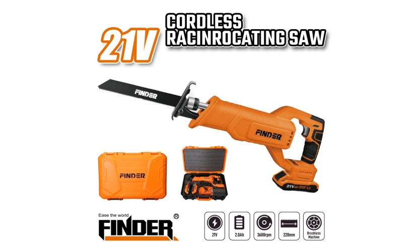 Σπαθόσεγα μπαταρίας από την νέα σειρά Max Series της Finder, υψηλής απόδοσης, κατάλληλη για εργασίες όπως κοπή φύλλων μετάλλου, ξύλου, πλαστικών σωλήνων κτλ.