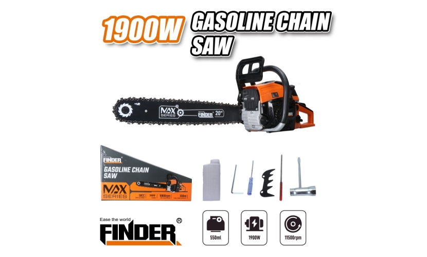 Βενζινοκίνητο αλυσοπρίονο από την νέα σειρά Max Series της Finder. O δίχρονος κινητήρας Finder εξασφαλίζει υψηλή ισχύ και αντοχή με εξαιρετική ροπή στρέψης που το καθιστά ιδανικό για κόψιμο κορμών δέντρων, μεγάλων κλαδιών και ξύλων. Απλός χειρισμός, λειτουργία και σταμάτημα, ελέγχονται με έναν μόνο μοχλό. Αυτό κάνει τον χειρισμό εξαιρετικά εύκολο και ασφαλή, καθώς ο χειριστής δεν χρειάζεται να απομακρύνει το χέρι του από τη λαβή.Σύγχρονος εργονομικός σχεδιασμός, υψηλής απόδοσης και αντοχής, με πολλές δυνατότητες χρήσης.