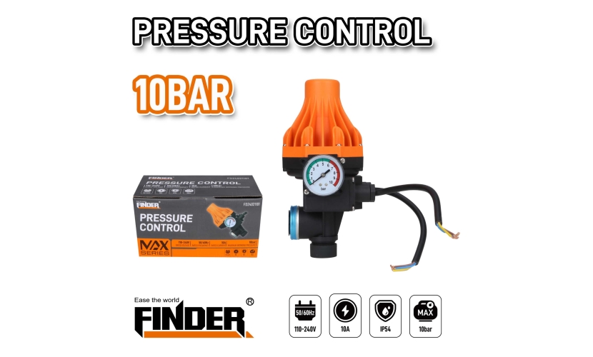 Συσκευή ελέγχου πίεσης.Υλικό: Nylon + ABSΤάση: 110-240VΡεύμα: 10AΣυχνότητα: 50Hz/60HzΙσχύς: 1100WΕπιτρεπόμενη πίεση: Max. 10BarΠροστασία: IP54Θερμοκρασία περιβάλλοντος: Max. 55C°