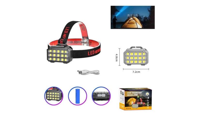 Επαναφορτιζόμενος φακός κεφαλής με 15 πομπούς LED/COB. Φωτισμός υψηλής ισχύος και εργονομική σχεδίαση, με ρυθμιζόμενο λουρί εφαρμογής. Κατάλληλος για επαγγελματική χρήση. Αυτονομία μπαταρίας: έως 2 ώρες. Περιλαμβάνεται επαναφορτιζόμενη μπαταρία 18650 και καλώδιο φόρτισης.Διαστάσεις φακού: 7.2x4.8cm