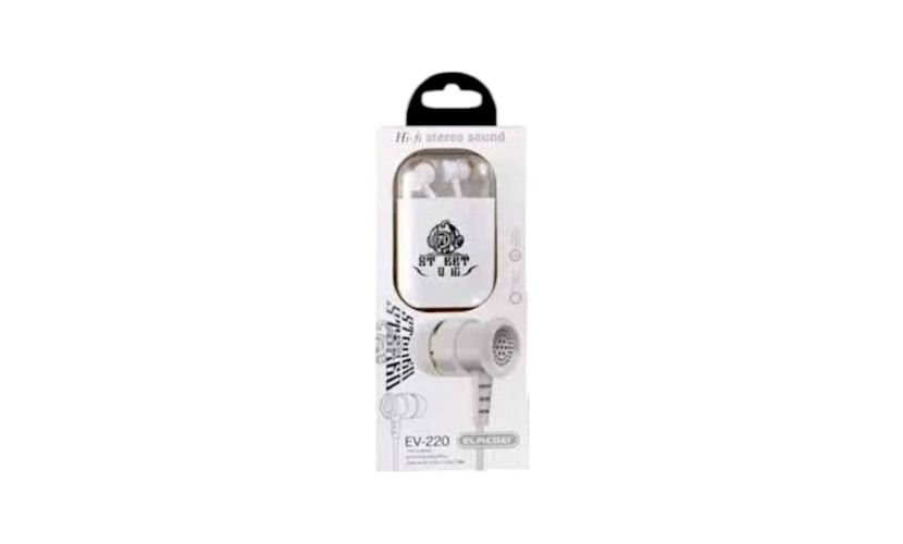 Ενσύρματα ακουστικά EV με στερεοφωνικό ήχο υψηλής ποιότητας, τεχνολογία ελαχιστοποίησης εξωτερικών θορύβων και ελαφρύ εργονομικό σχεδιασμό για άνετη πολύωρη χρήση. Διαθέτουν πλήκτρο/ελεγκτή για την άμεση απάντηση στις κλήσεις σας χωρίς να χρειάζεται να απαντήσετε από το smartphone σας. Σε πλαστική θήκη για εύκολη μεταφορά. Χαρακτηριστικά: Σύνδεση Jack 3.5mm - Συμβατά με όλα τα κινητά τηλέφωνα και άλλες ηλεκτρονικές συσκευές που διαθέτουν θύρα Jack. Μέγεθος ηχείου ακουστικού: 10mm Μήκος καλωδίου: 1.20m