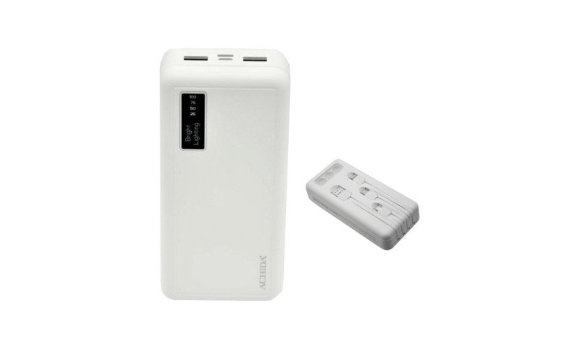 Διαθέτει 4 ενσωματωμένα καλώδια φόρτισης (Type C, Micro USB, Lightning, USB),2 θύρες USB,Ψηφιακή οθόνη ένδειξης επιπέδου μπαταρίας,Προστασία από υπερφόρτωση.