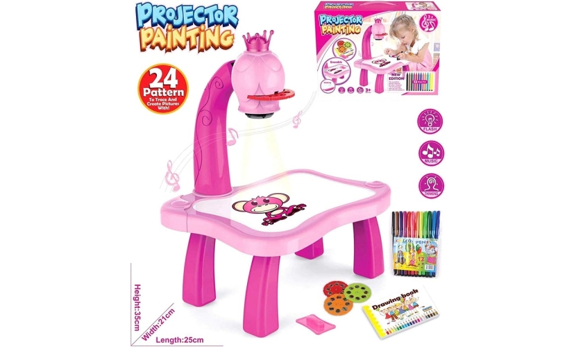Προτζέκτορας ζωγραφικής σε υπέροχο σχεδιασμό Princess που θα σε βοηθήσει να δημιουργήσεις πανεύκολα ζωγραφιές που θα εντυπωσιάσουν! Περιλαμβάνει 3 κάρτες με 8 slides η καθεμία και μαρκαδόρους όλων των χρωμάτων. Ανθεκτική κατασκευή που στήνεται πανεύκολα.
