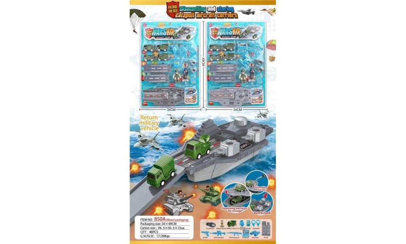 Σετ στρατιωτικά οχήματα σε υπέροχο πολύχρωμο σχεδιασμό, με πλοίο που ανοίγει και μετατρέπεται σε χώρο αποθήκευσης και πολλά ακόμη αξεσουάρ, για ένα συναρπαστικό παιχνίδι με όλη τη παρέα!