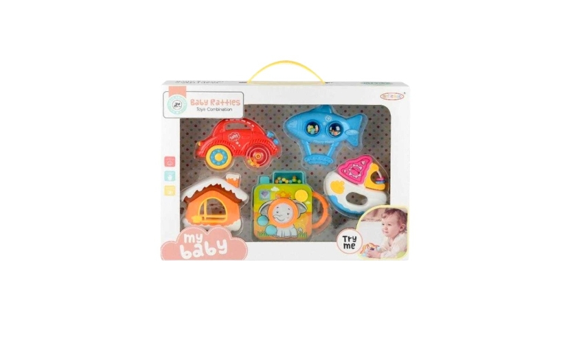 Βρεφικές κουδουνίστρες και μασητικά από ασφαλή μη τοξικά υλικά, σε υπέροχα σχέδια και χρώματα, με χειρολαβές για εύκολη χρήση. Το σετ περιλαμβάνει 5 τεμάχια.