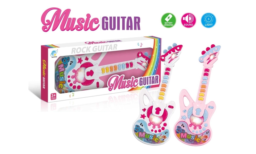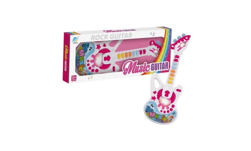 Παιδική ηλεκτρονική κιθάρα σε πανέμορφο πολύχρωμο σχεδιασμό, με φωτισμό και δυνατό ήχο, για να γίνεις μία αληθινή Ροκ Σταρ! Διαθέτει ρυθμιζόμενο λουράκι ώμου.