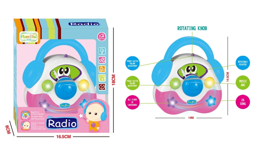 Βρεφικό παιχνίδι ραδιοφωνάκι, σε υπέροχο πολύχρωμο σχεδιασμό, με ήχους, μουσική και φωτισμό που θα κεντρίσουν το ενδιαφέρον του μωρού σας.