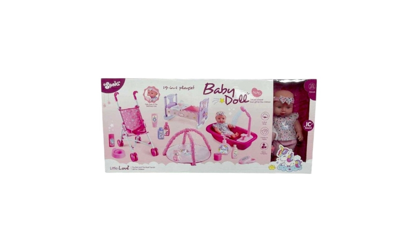 Πλήρες σετ φροντίδας μωρού με κούκλα, κρεβατάκι, καροτσάκι, πάρκο, μπανάκι και όλα τα απαραίτητα αξεσουάρ για την ολοκληρωμένη φροντίδα και την περιποίηση του μωρού σου!