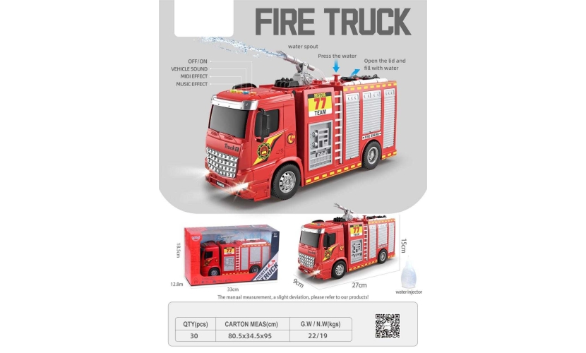 Παιδικό όχημα Πυροσβεστικής με εκτόξευση αληθινού νερού, με υπέροχο ρεαλιστικό σχεδιασμό, και εξαιρετικά ανθεκτική κατασκευή.Ιδανικό και για παιχνίδι παραλίας.