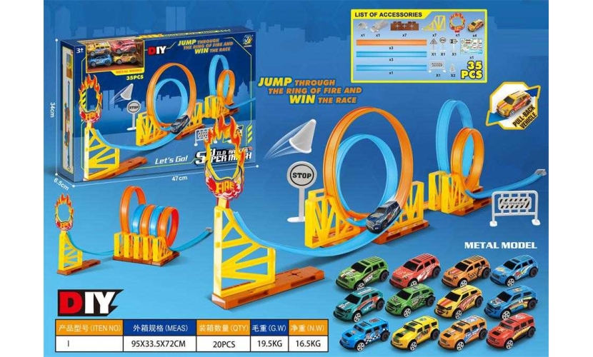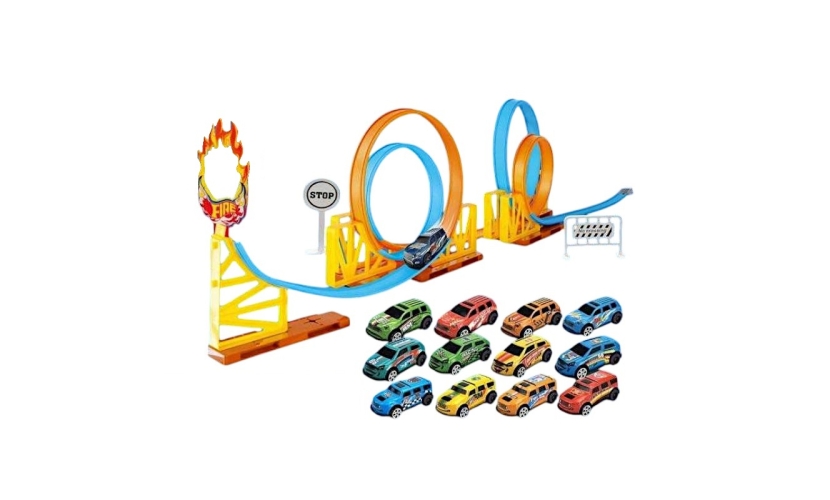 Αυτοκινητόδρομος πίστα με περιστροφή 360 μοιρών, εκτοξευτή και αξεσουάρ. Στήσε πανεύκολα τη πίστα σου και ετοιμάσου για ατελείωτους αγώνες ταχύτητας και τρελά κόλπα!