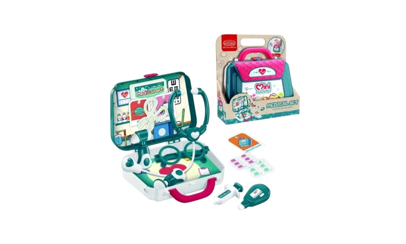 Παιχνίδι σετ ιατρικής σε υπέροχο σχεδιασμό με πολλά αξεσουάρ, σε πανέμορφο, πρακτικό βαλιτσάκι μεταφοράς.