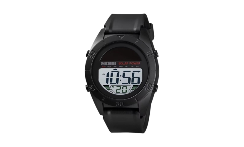 Ψηφιακό ρολόι χειρός Skmei με εξαιρετικό σπορ design και στυλ που ταιριάζει σε κάθε ύφος και διάθεση. Διαθέτει ενσωματωμένο ηλιακό πάνελ στο καντράν, που παρατείνει την διάρκεια της μπαταρίας για μεγαλύτερο διάστημα.