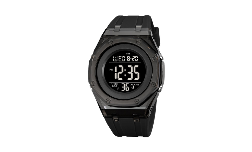 Ψηφιακό ρολόι χειρός Skmei με εξαιρετικό design και στυλ που ταιριάζει σε κάθε ύφος και διάθεση. Χαρακτηριστικά: Άνετη εφαρμογή, Αντοχή υγρασίας, Καπάκι μπαταρίας από ανοξείδωτο ατσάλι, Μήκος λουριού: 23cm, Πλάτος καντράν: 44.3mm, Πάχος κάσας: 13.5mm, Backlight, Βασικές λειτουργίες: Ημερομηνία, Ώρα, Χρονομέτρηση.