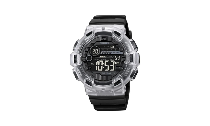 Ψηφιακό ρολόι χειρός Skmei με εξαιρετικό σπορ design και στυλ που ταιριάζει σε κάθε ύφος και διάθεση. Χαρακτηριστικά: Άνετη εφαρμογή, Λουρί σιλικόνης TPU, Αντοχή υγρασίας, Καπάκι μπαταρίας από ανοξείδωτο ατσάλι, Backlight, Μήκος λουριού: 23cm, Διάμετρος καντράν: 50mm, Πάχος κάσας: 17.7mm, Βασικές λειτουργίες: Ημερομηνία, Ώρα, Χρονομέτρηση.