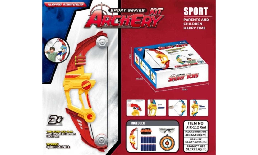 Παιδικό σετ τοξοβολίας με μεγάλο τόξο, βέλη με βεντούζα, ταμπλό στόχου και αξεσουάρ. Εντυπωσιακός σχεδιασμός, ανθεκτική κατασκευή και εργονομική λαβή για να εξασκήσεις τις ικανότητές σου και να γίνεις ο καλύτερος του αθλήματος!