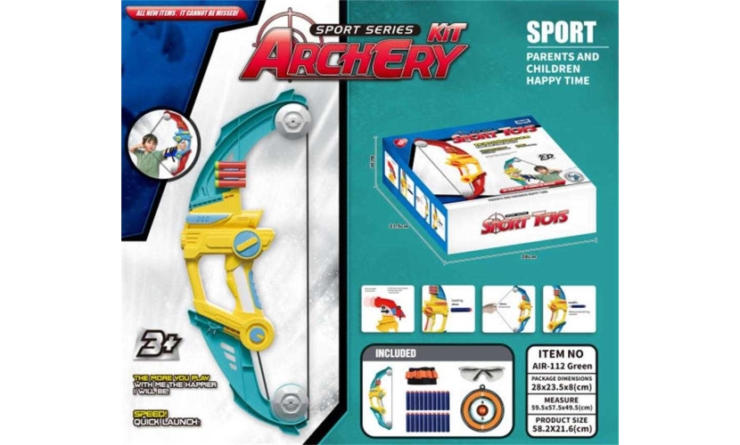 Παιδικό σετ τοξοβολίας με μεγάλο τόξο, βέλη με βεντούζα, ταμπλό στόχου και αξεσουάρ. Εντυπωσιακός σχεδιασμός, ανθεκτική κατασκευή και εργονομική λαβή για να εξασκήσεις τις ικανότητές σου και να γίνεις ο καλύτερος του αθλήματος!