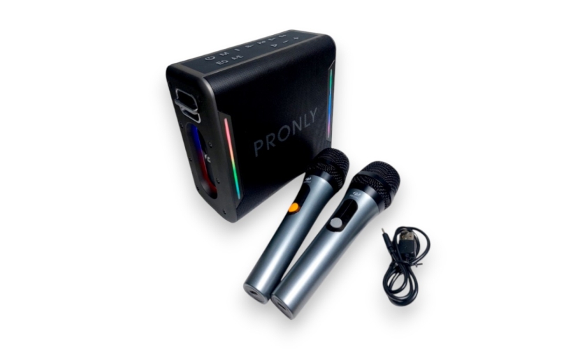 Φορητό ηχείο subwoofer με εξαιρετικής ποιότητας ήχο, εντυπωσιακό φωτισμό που προσαρμόζεται στο ρυθμό της μουσικής και πρακτικό σχεδιασμό μεταφοράς-τρόλεϊ . Περιλαμβάνει 2 ασύρματα μικρόφωνα καραόκε και τηλεχειριστήριο για εύκολο χειρισμό.