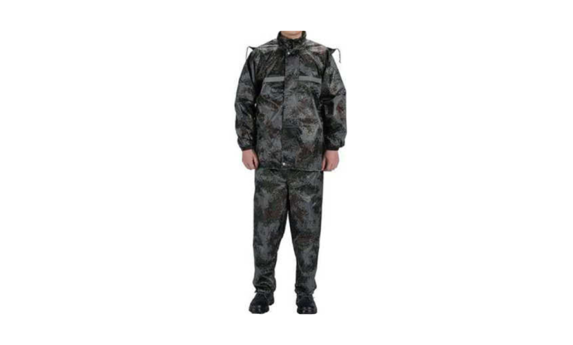 Αδιάβροχη φόρμα σε χρώμα παραλλαγής, One Sized, με κουκούλα και ανακλαστικές λωρίδες. Καλύπτει μέχρι XL.Κατασκευασμένη από υψηλής ποιότητας, ανθεκτικό, αδιάβροχο υλικό, με άνετη εφαρμογή.