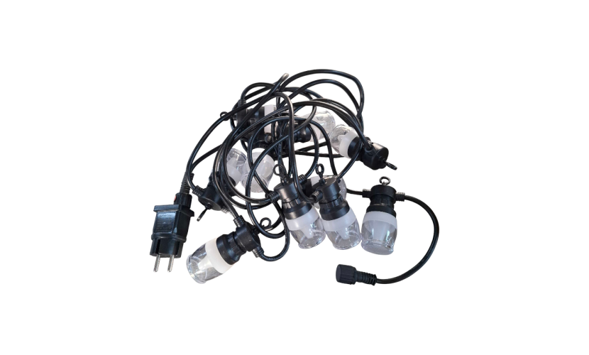 Γιρλάντα φωτισμού LED, συνολικού μήκους 5m, με 10 λαμπτήρες LED. Διαθέτουν αδιάβροχη επένδυση IP44 για χρήση σε εξωτερικό χώρο και ειδικά κρεμαστράκια τοποθέτησης. Τροφοδοσία ρεύματος 220V.Δέχονται επέκταση. Ανθεκτικό περίβλημα plexy glass.Χρώμα φωτισμού: Θερμό λευκόΙσχύς: 6W