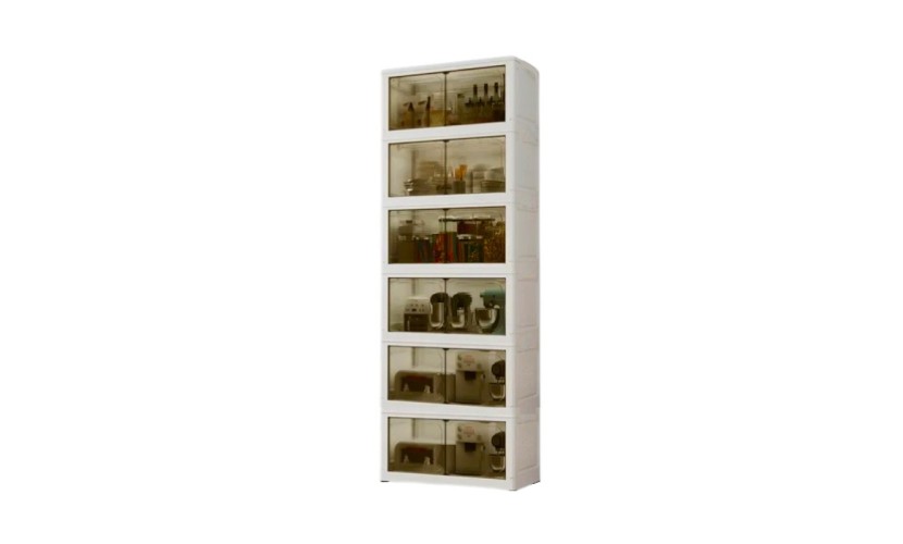 Πλαστικό ντουλάπι αποθήκευσης δαπέδου 6 επιπέδων - 5 κλειστές θέσεις & ράφι, με στιβαρό σκελετό και θήκες με μαγνητικό πορτάκι από λεπτό, εύκαμπτο πλαστικό υλικό μεγάλης ανθεκτικότητας,ιδανική για χρήση ως παπουτσοθήκη, ως έπιπλο εισόδου ή για την οργάνωση της αποθήκης σας.